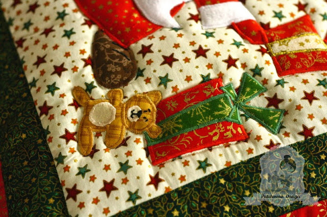 A karácsonyfa mintája egyszerű é gyorsan elkészíthető. Rudolf alakjában pedig az agancs jelent némi kihívást. Ahhoz, hogy keskeny és karcsú legyen, mint egy igazi szarvasagancs kicsi ívek találhatóak benne. Az elkészítése nagyobb odafigyelést igényel és mindenképpen óvatosabban tapossuk a varrógép pedálját!