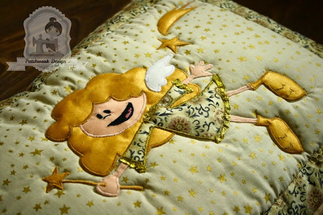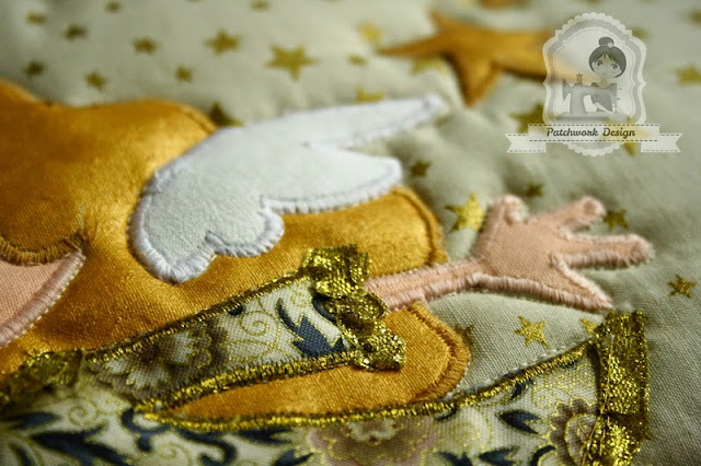 Az egyetlen komolyabb kihívás az angyalka nyitott tenyere. Ez a részlet még A3-as nagyításban is elég apró. Igényel némi gyakorlatot az applikálása. Javaslom, hogy akinek ez nehézséget okoz(na) egyszerűsítsen a mintán, kerekítse le a tenyeret, mint ahogy a másik (a zárt ) kéz látható.