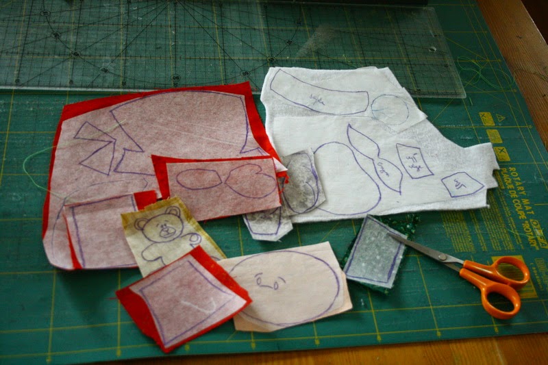 Az angyalka szárnyának egy fehér (nyomott mintás) anyagot használtam. A fehér anyagon könnyen átüt az alatta lévő anyag mintája, ezért vékony ragasztós vetexet vasaltam rá. Így együtt már olyan „vastag” lett a szárny, hogy nem ütött át az alap mintázata!