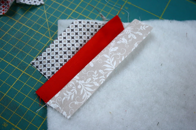 A kis kulcstartó quilt-as-you-go technikával készült, így az alapja igencsak haladós. A befejező munkálatok kézzel készülnek, így van benne igazi kézimunka is. 🙂