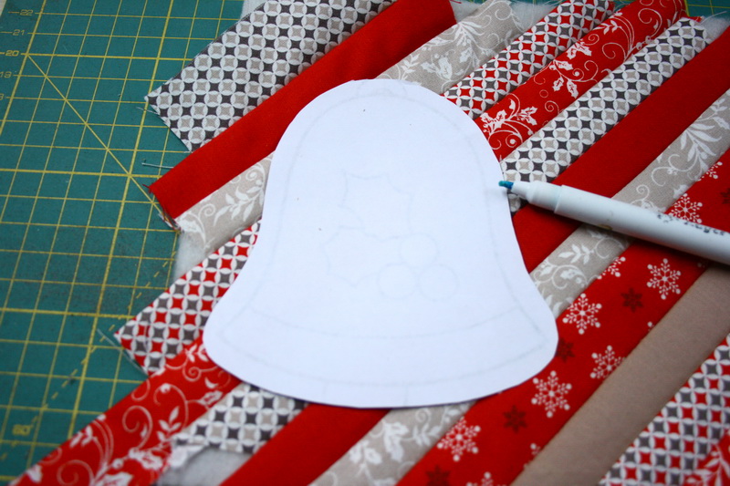A vasalt szél mentén varrd fel a csengő elejére a mintát.