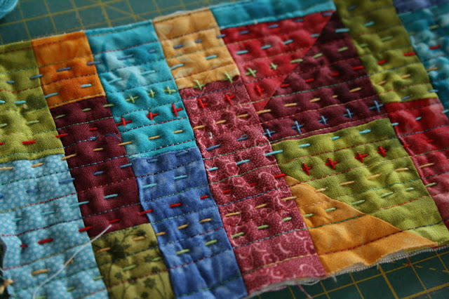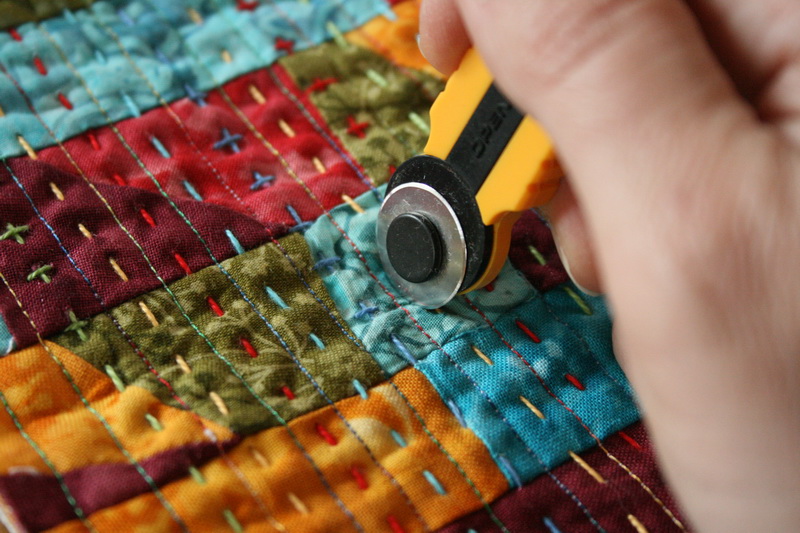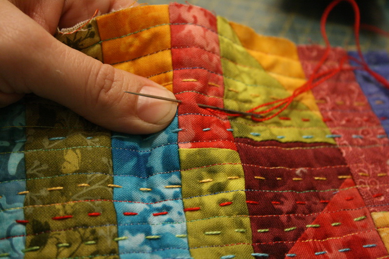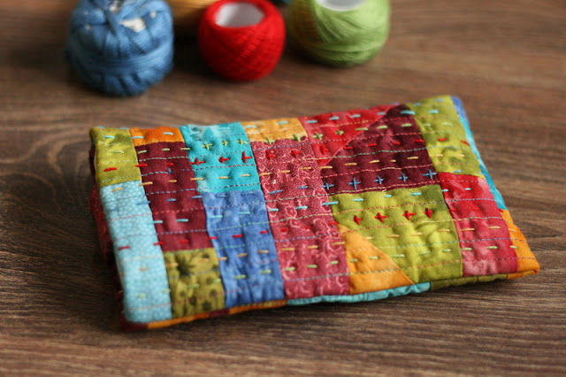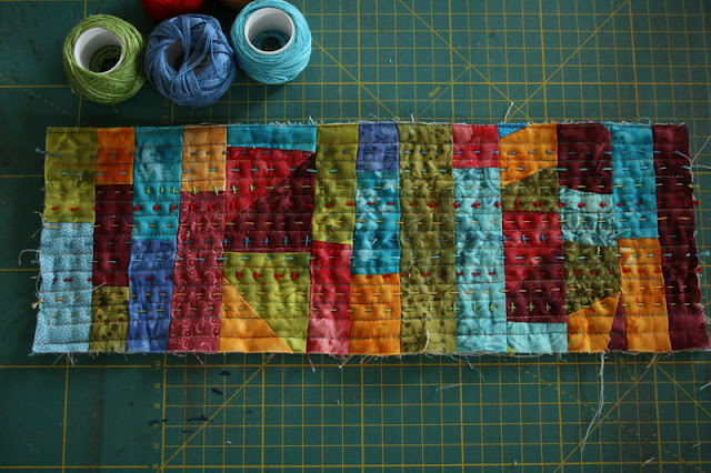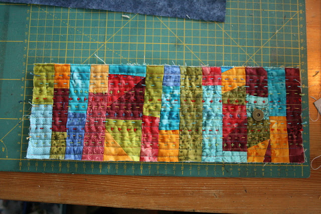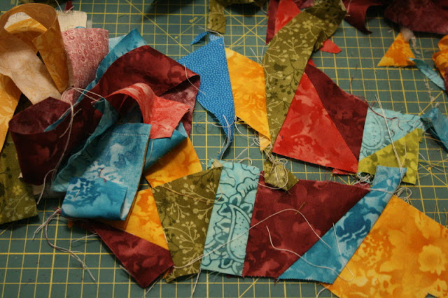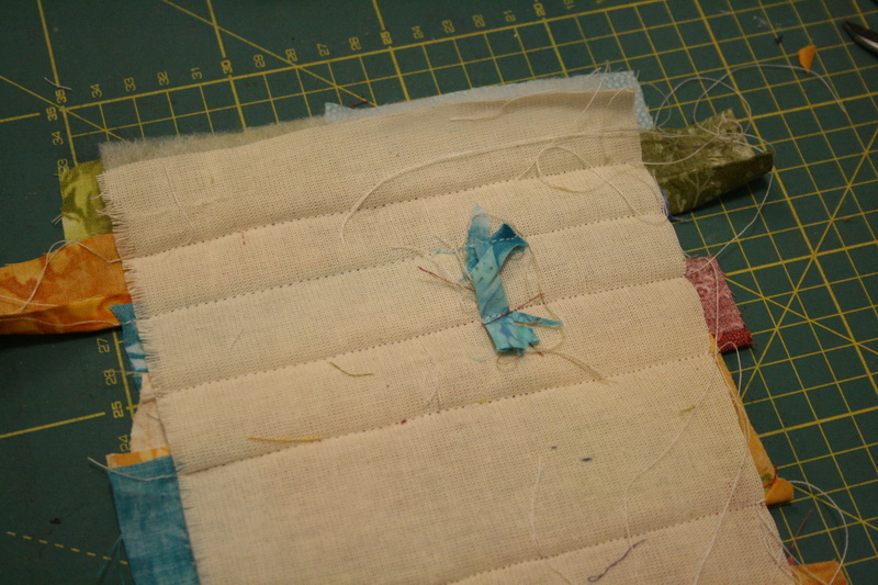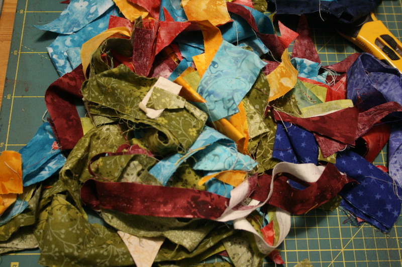 A színes minták varrása közben nagyon sok apró pici hulladék keletkezik. Ezeket külön össze szoktam gyűjteni, és ha már túl sok van belőle egy kupacban, akkor színek szerint csoportosítva átkerülnek a még használható darabok egy műanyag dobozba. Mielőtt ezt a szelektálást elvégeztem volna, úgy gondoltam készítek egy kisebb darabot, amihez fel tudom használni ezeknek a maradékoknak egy részét. Egy kicsi részét. 🙂