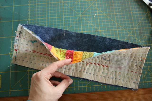Körbevarrtam a darabaot talpszélességgel, csak a belső részen hagytam egy kb. 4 cm-es kifordítónyílárt.